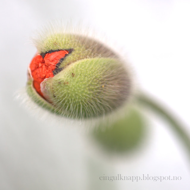 Ein av mine favorittar i hagen. Desse valmuene har spreidd seg langs heile den søndre husveggen på desse fire åra. Det begynte med tre flotte valmuer, og no er det mange! Og eg elskar den sterke oransje fargen og dei florlette, tynne kronblada. Til og med den lodne knoppen er vakker!